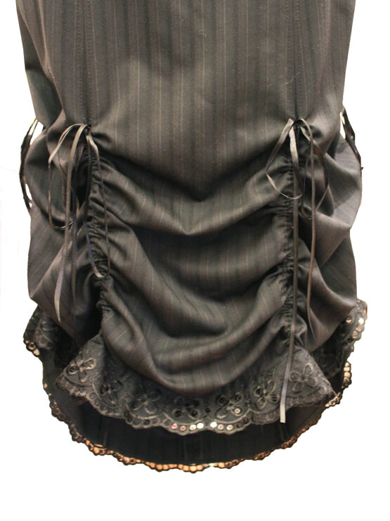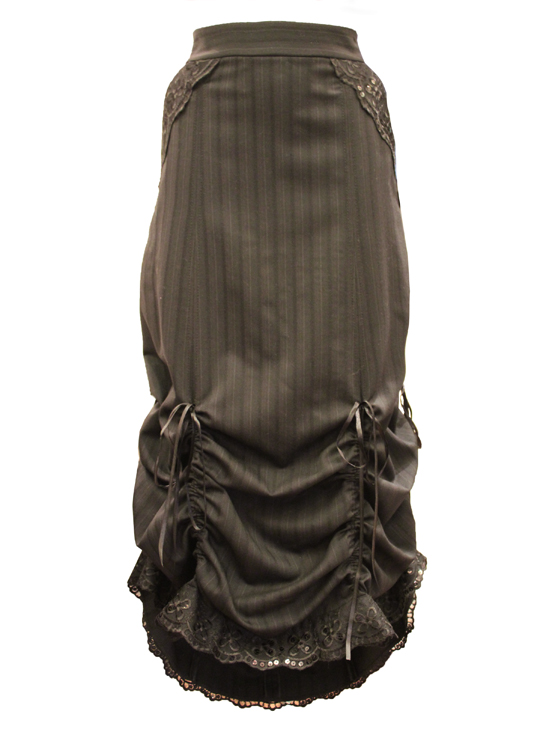 Оригинальная длинная юбка с буфами. По низу юбки предусмотрены кулиски с лентами, которые позволяют менять длину юбки. За счет них можно присобрать ткань больше или меньше и менять длину таким образом. Два боковых кармана и низ юбки украшены кружевом. Ткань в мелкую полоску, состав 95% шерсть 5% эластана. Ткань есть в наличии. возможен пошив подобной юбки по размерам без примерок или с примерками. При пошиве без примерок действует 30% скидки от указанной цены.